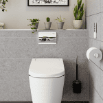 - Rimless toilet pan with direct flushing technique offers improved hygiene by reducing the build-up of bacteria and making cleaning easier