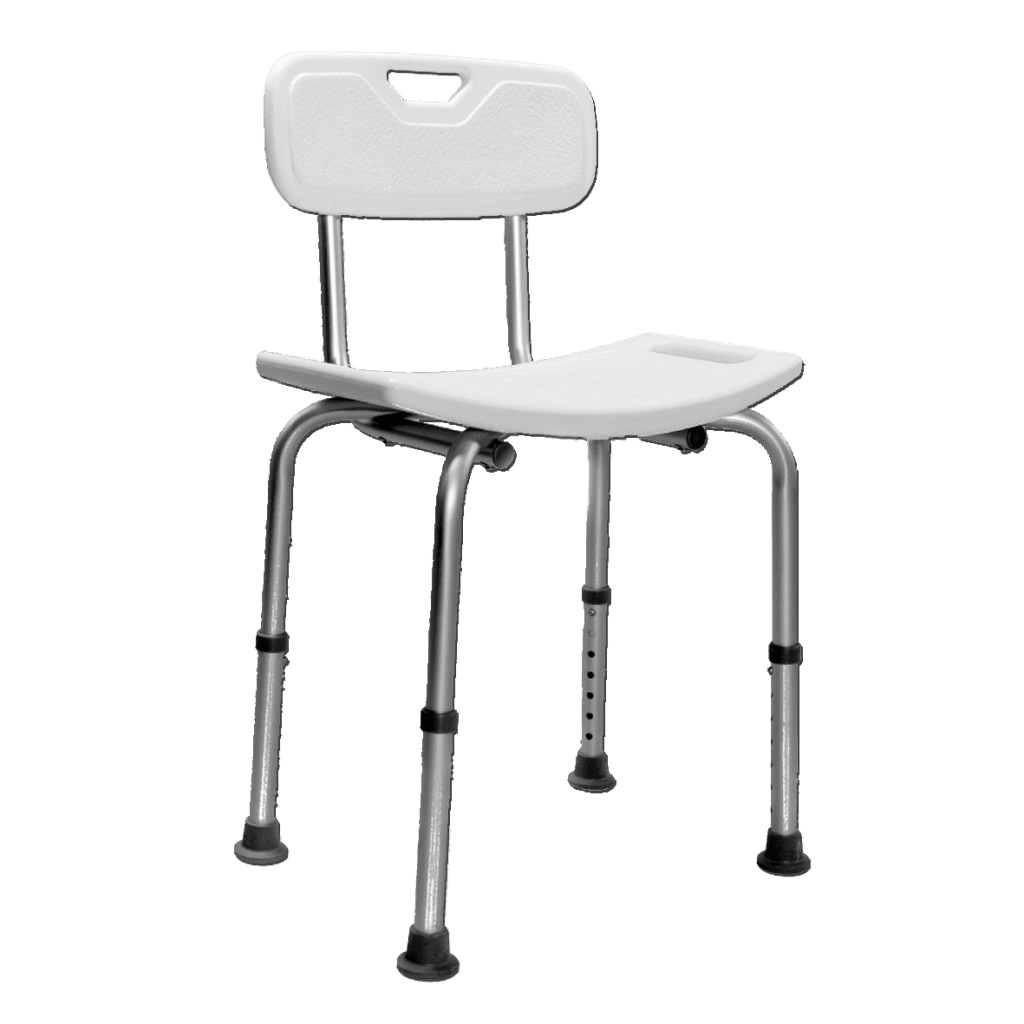 The Freestanding Shower Seat features four aluminium support legs that can be easily adjusted between a height of 350-500mm, with suction feet for added stability and a comfortable seat and back rest.