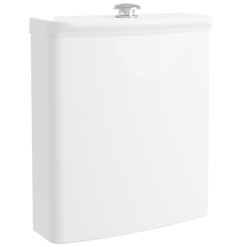 Optional sensor flush valve offers contact-free flush operation and is available separately; this must be ordered alongside the Navlin Cistern with Raised Push Button Flush and installed in place of the button flush mechanism/valve