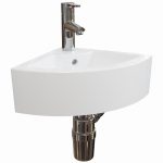 Designed to utilise space in a smaller bathroom or washroom, the wall-mounted Navlin Corner Wash Basin features one tap hole and is finished with a stylish, curved front.