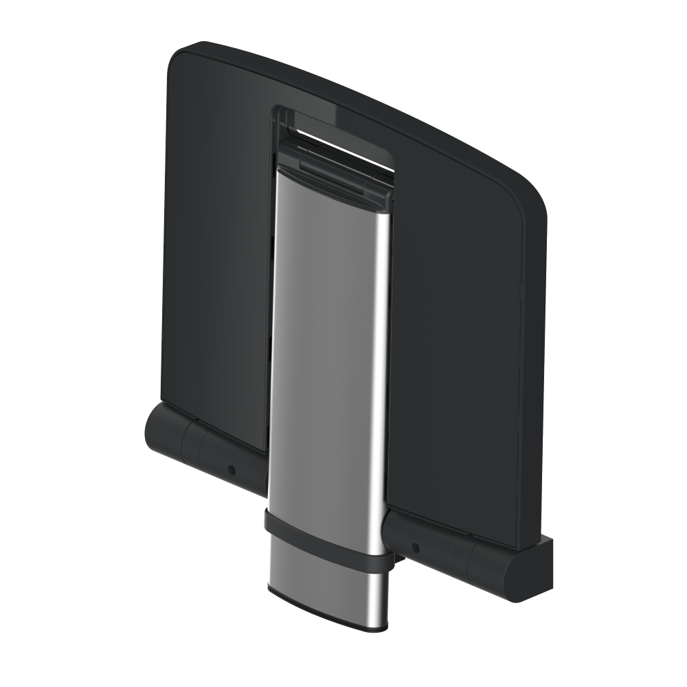 Available in cool white or bold black with stylish chrome accents, the seat benefits from an ergonomic fold-up seat with a soft-close, durable aluminium leg that can safely support individuals of up to 31.5st / 200kg.