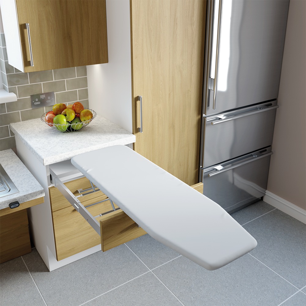 Simply pull out the drawer and unfold the ironing board to use, with access beneath for people using wheelchairs to position themselves comfortably.