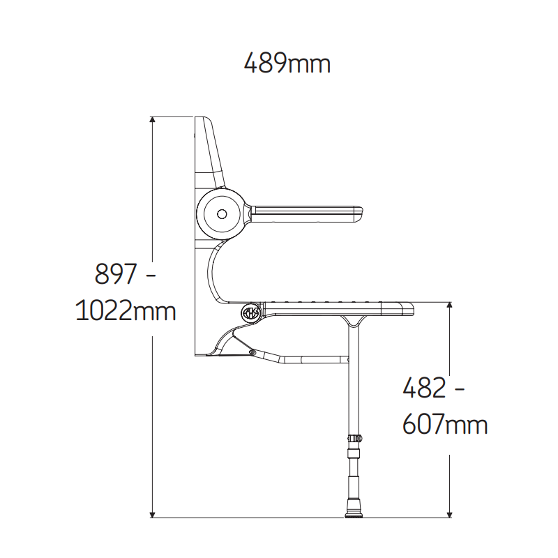 Adjustable for comfort, seat height can be adjusted at the point of installation to accommodate the individual’s needs with seat heights of between 482-607mm