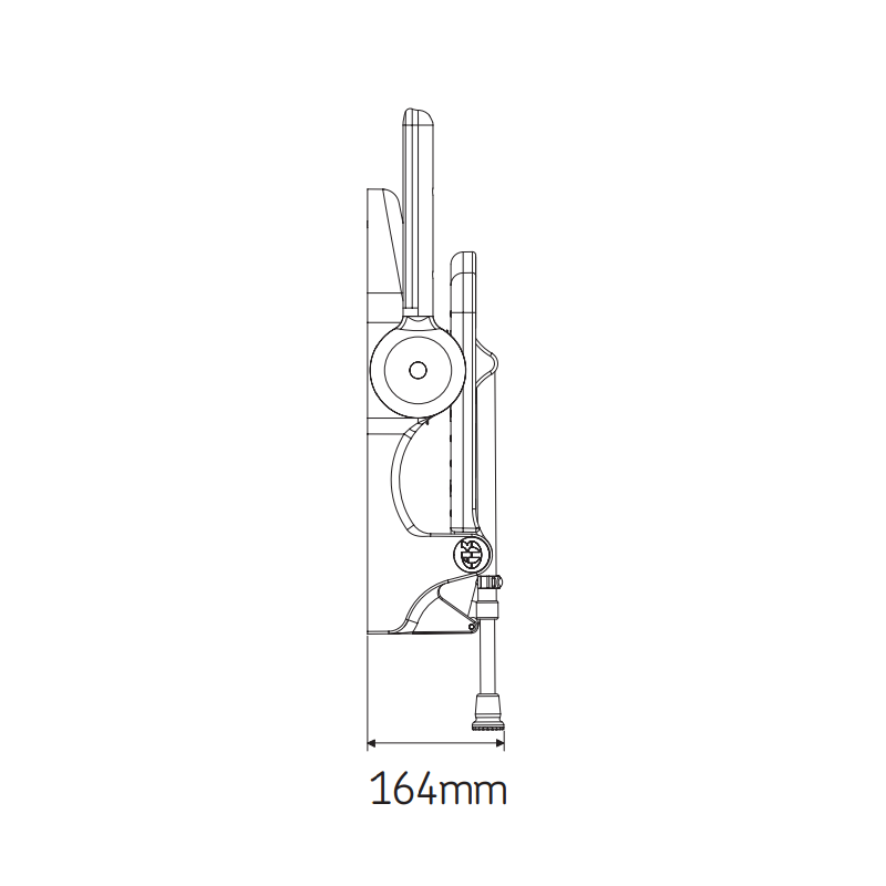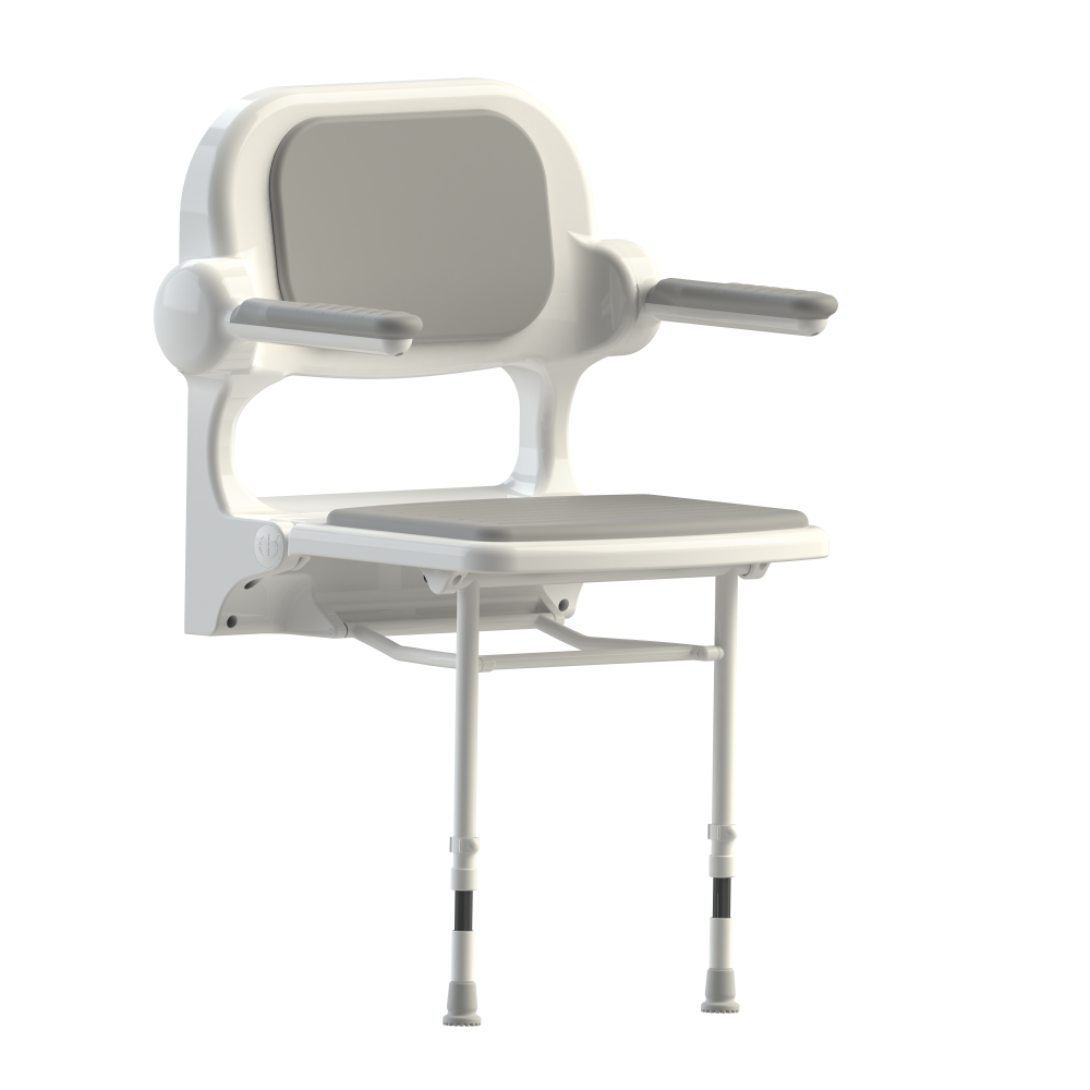 Folding seat and arms neatly tuck away to maximise space when not in use