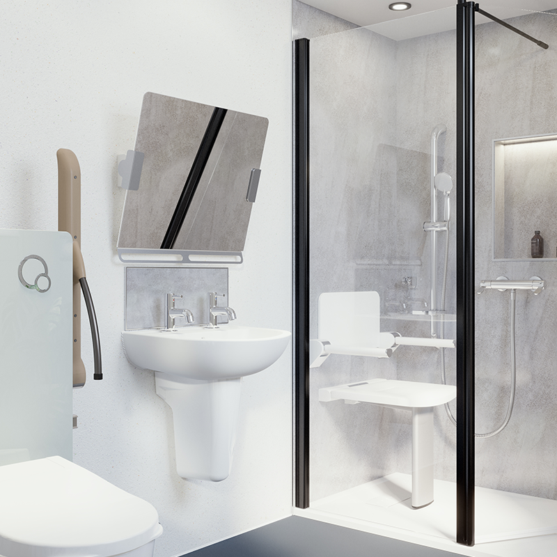Accessible handles enable easy adjustment for both left and right-handed users and those with limited dexterity, whilst also helping to keep the mirror surface clean
